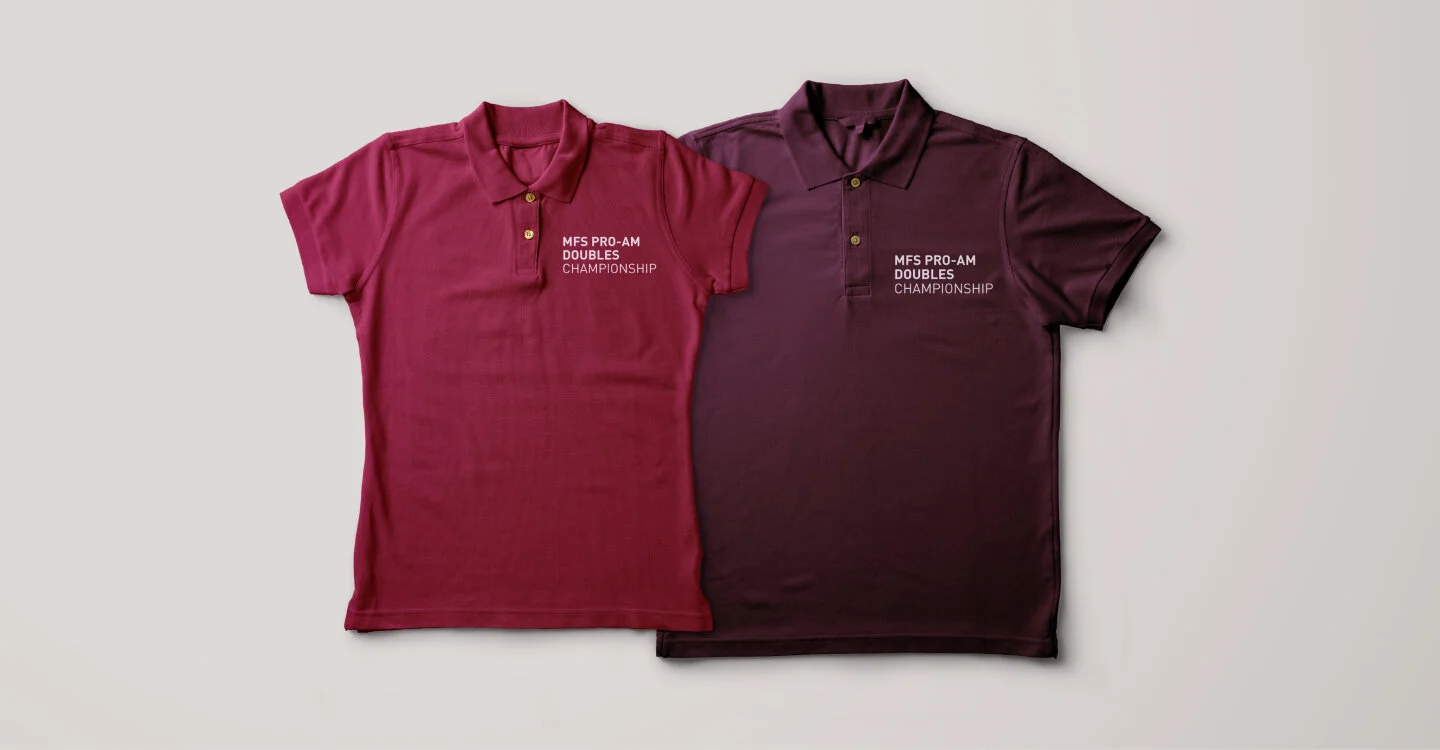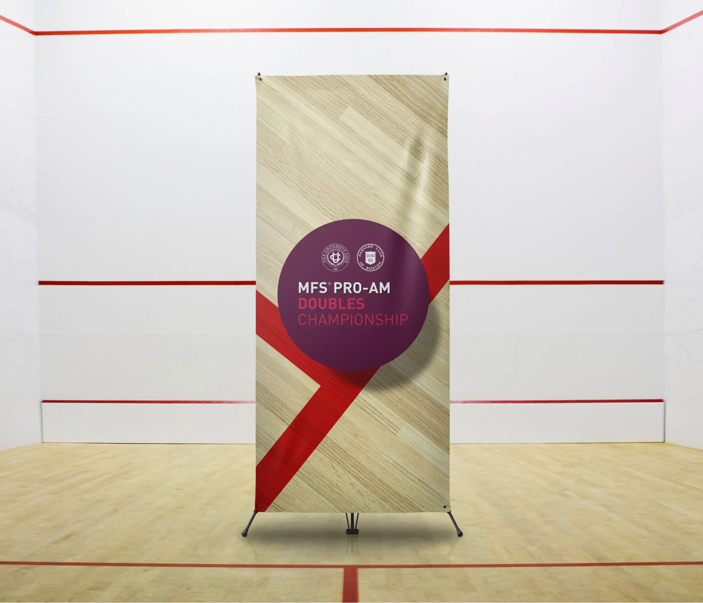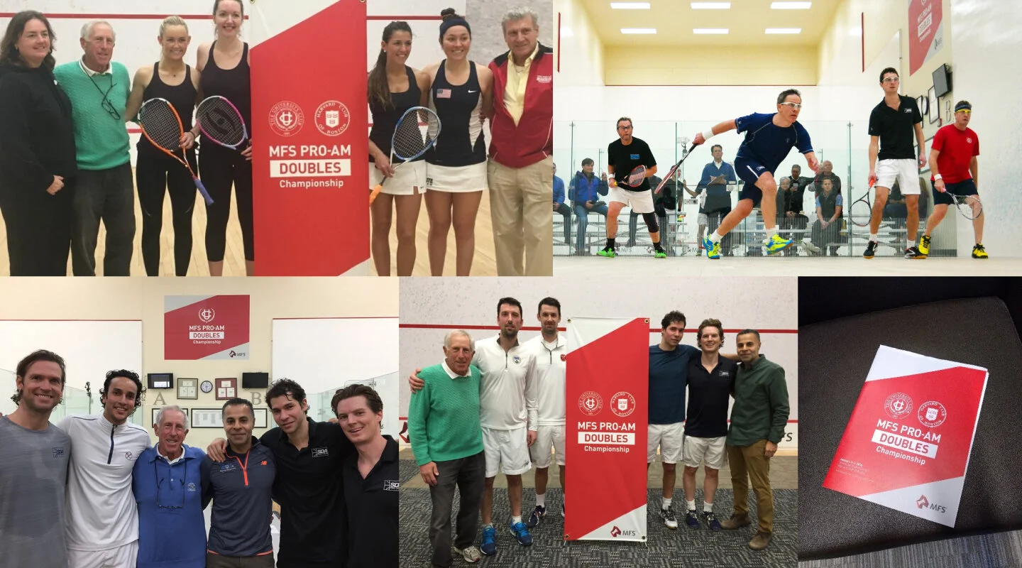 Massachusetts Financial Services (MFS) sponsors a professional squash tournament at the Harvard Club and University Club of Boston every year. Building off of the design from last year, we developed 8 different designs using various squash elements in both photographic and graphical form. The final design was used across print, marketing signage, apparel and more.